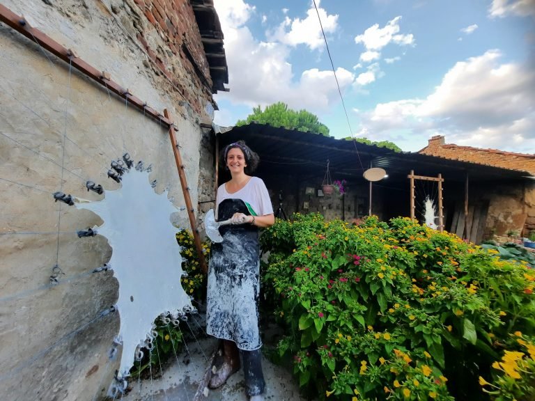 “It’s a very demanding job,” she said. “We remove the hair, meat and fat remnants from the skin with special knives, without using any chemicals other than lime water solution, and then we scrape it and make it as thin as possible.”