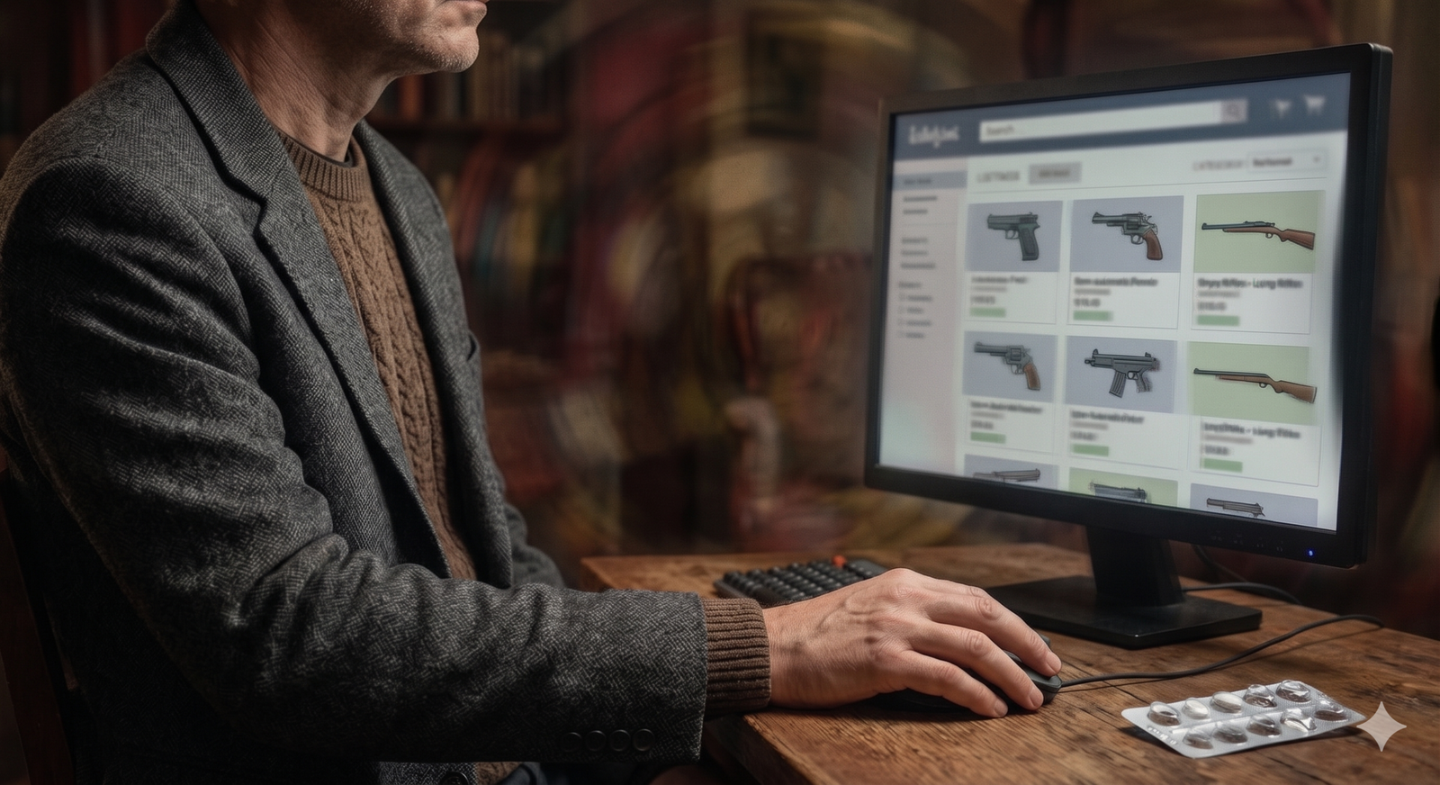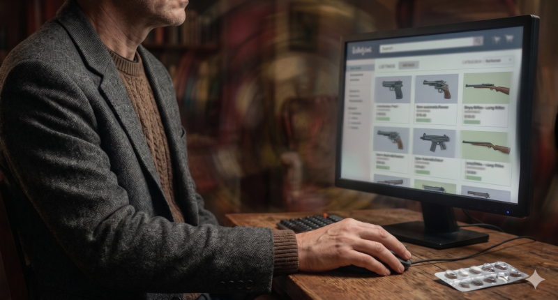 İnternetten silah satışına yönelik denetim eksikliği, bu tehlikeli silahlara erişimi daha da kolaylaştırıyor (Yapay zeka aracı Gemini ile oluşturuldu)
