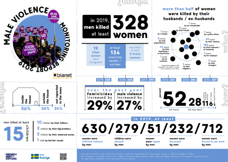 Like in many other countries, the majority of gender-based violence takes place in the home: according to a report by Turkey’s Police Academy, 72.8 per cent of femicides in 2016, 2017, and 2018 occurred at home. Partners and former partners are often the perpetrators.