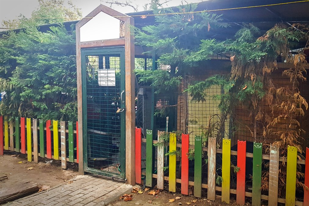 The first cat houses installed in Mistik Park are still there; now they are covered with a roof and surrounded by a wire fence with a locked, human-sized door and a cat-sized entrance. A group of 12 volunteers called Pati (Paw) holds the key.