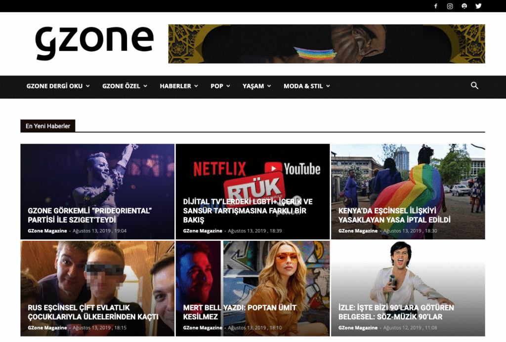 Another LGBTI-oriented media outlet is Gzone, which describes itself as “Turkey’s biggest LGBTI+ culture and life magazine”.
