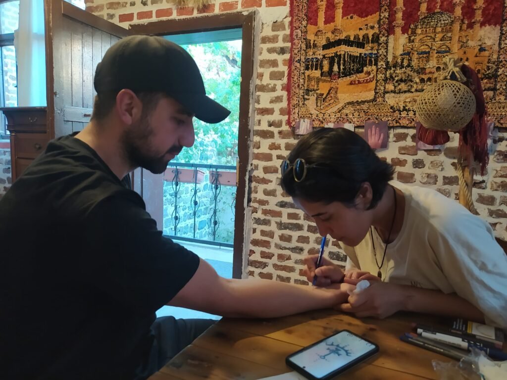 “I like tattoos but I wanted it to be something from my own culture, that’s why I decided on deq,” he says. “I am from Diyarbakır and I’m Kurdish. I will enjoy talking about my culture when someone asks about my tattoo.”