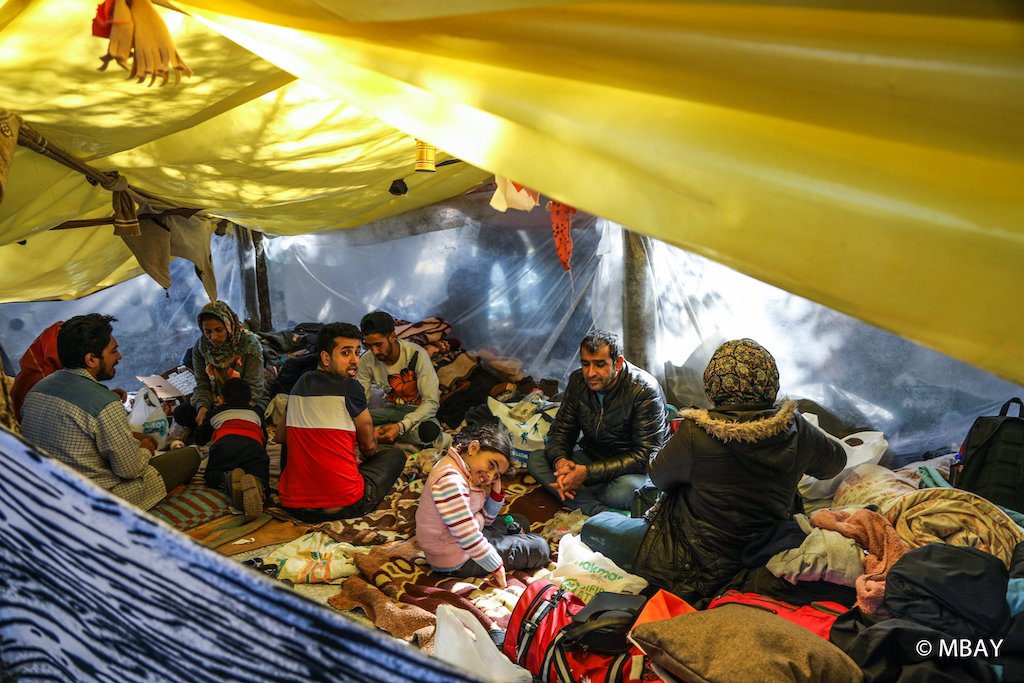 Refugees in the buffer zone, in front of the fences, 29 February, 2020 (Credit: Murat Bay)
