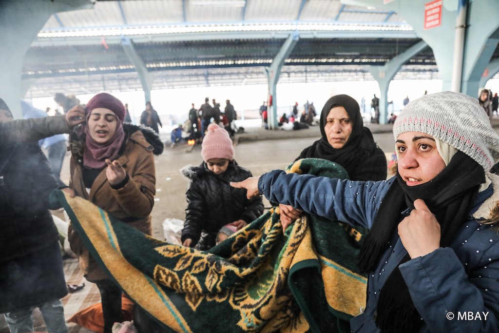 Refugees wait at the buffer zone, 29 February, 2020 (Credit: Murat Bay)