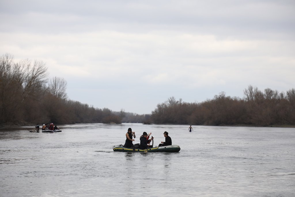 Smugglers taking refugees across the river in dinghies, 29 February, 2020 (Credit: Murat Bay)