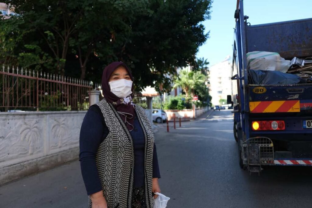 Havva Karakus, a resident of Muratpasa’s Meltem neighborhood, says once-a-week collection is not optimal. Many people would rather not save their waste for a whole week and don’t have space in their homes to store it, Karakus says.