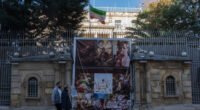 The Iranian national flag flies at half-staff above the consulate in Istanbul following the killing of Supreme Leader Ali Khamenei Credit: Ingrid Woudwijk
