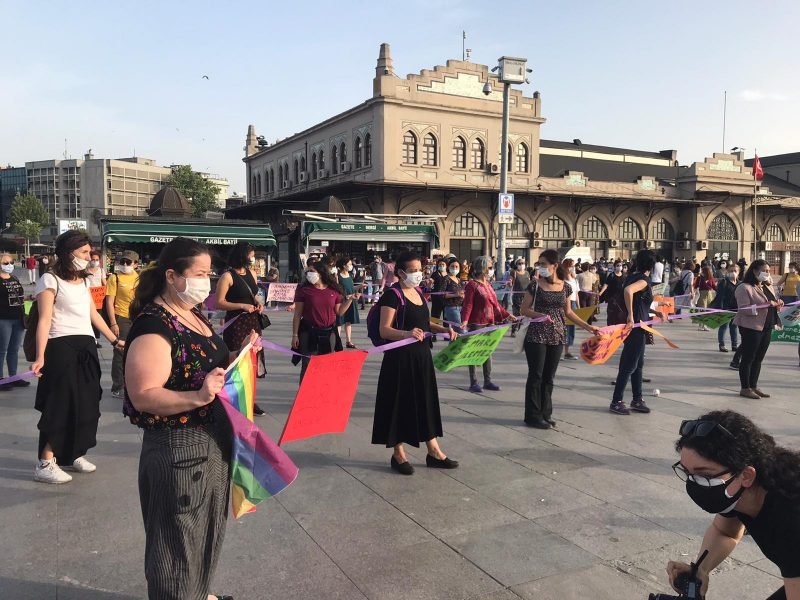On May 21, as the government was once again preparing to bring a possible amnesty for child abusers through marriage to the country’s agenda, women activists organized protests in several cities in Turkey, maintaining social distancing and wearing masks. They were holding banners that read: “Don’t whitewash abuse” and “Women are strong together at the time of corona.”